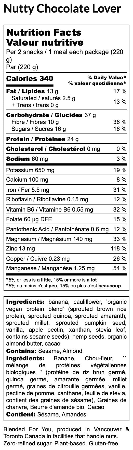 The Nutty Chocolate Lover smoothie is high in key vitamins and minerals and contains a carefully orchestrated balance of carbs, protein, and healthy fats.