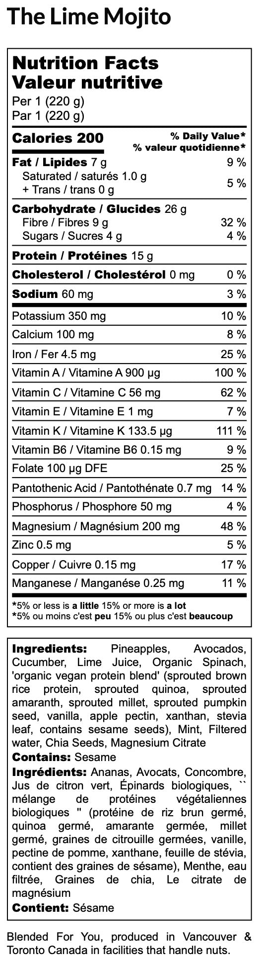 The Lime Mojito smoothie is high in key vitamins and minerals, and contains a carefully orchestrated balance of carbs, protein, and healthy fats. It's also a great on-the-go meal or snack.