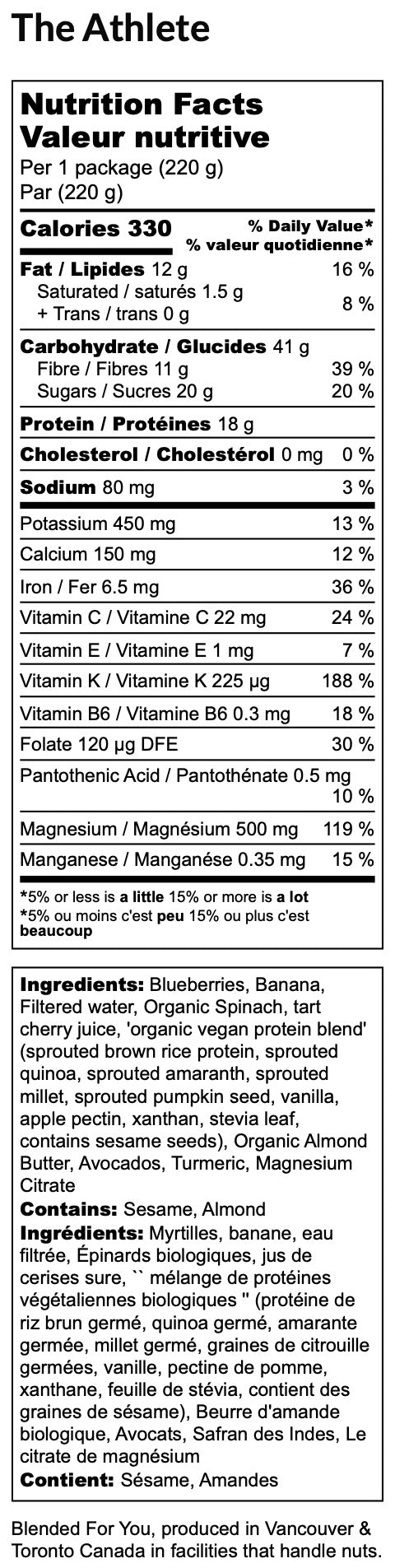 We developed The Athlete, unsurprisingly, for the athletes among us. It won't do all the hard work, but we've boosted it with vegan protein blend (soy-free), turmeric and magnesium to support muscle repair and recovery. It's also nutritionally balanced, so when our trainer tells us to eat a balance of carbs/proteins/fats within 30 minutes of working out, we can tell them it's handled.